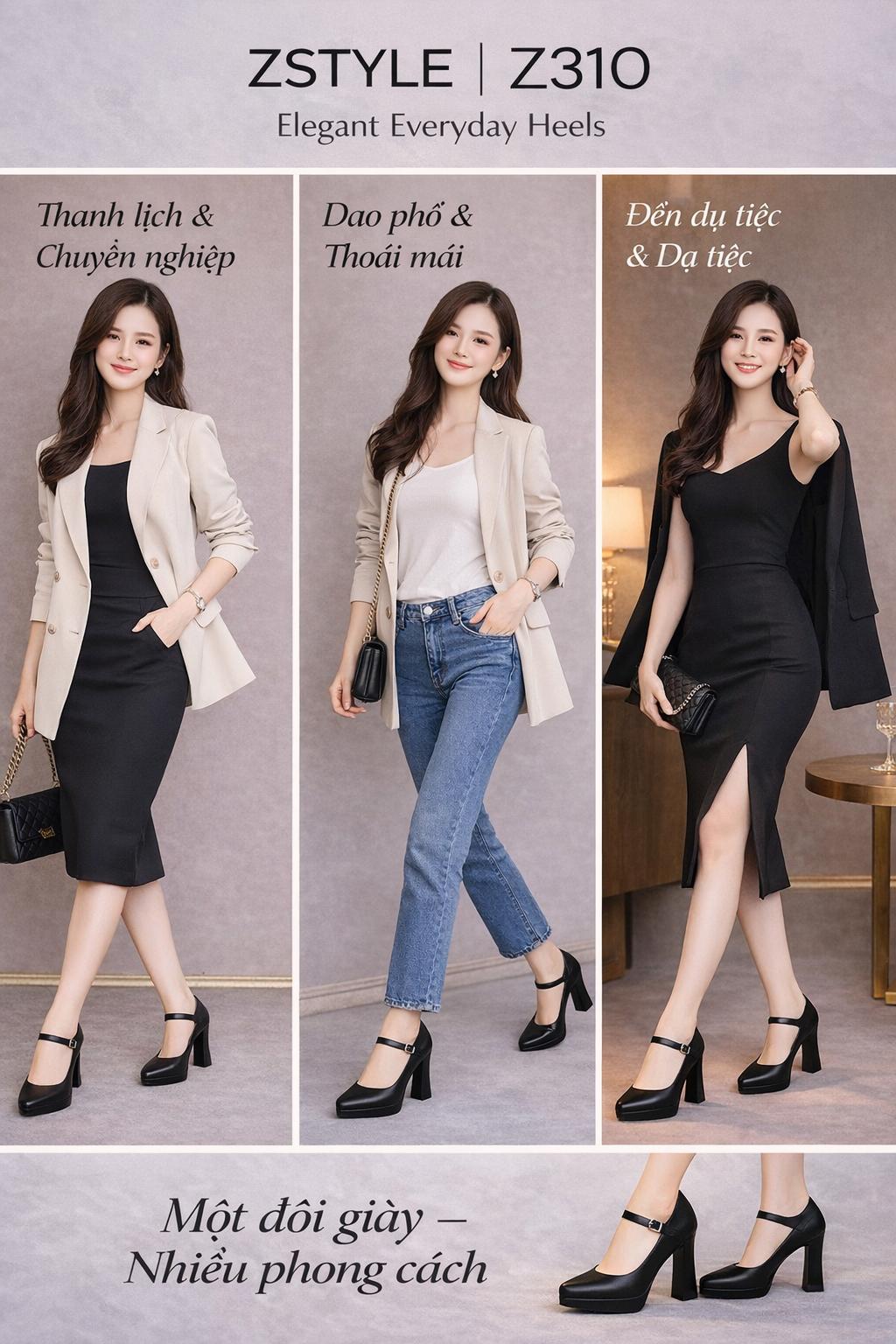 Với Z310, bạn có thể linh hoạt biến hóa phong cách từ công sở đến dạo phố hay dự tiệc mà không cần đổi giày.